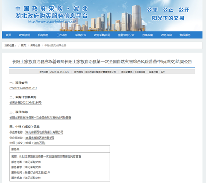 我公司成功中标長(cháng)陽土(tǔ)家(jiā)族自(zì)治縣第一(yī)次全國(guó)自(zì)然災害綜合風(fēng)險普查項目
