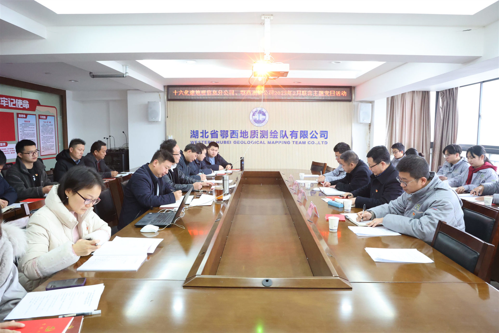 2月(yuè)28日(rì),我公司與中國(guó)化(huà)學工(gōng)程第十六建設有(yǒu)限公司地(dì)理(lǐ)信息分(fēn)公司黨支部聯合開(kāi)展主題黨日(rì)活動,以“搶抓機(jī)遇争先行(xíng)擔當實幹建新功為(wèi)實現(xiàn)我隊高(gāo)質量發展、建設幸福七隊而團結奮鬥&¥rdquo;為(wèi)主題展開(kāi)交流學習(xí)。地(dì)理(lǐ)信息分(fēn)公司總經理(lǐ)孟令勝、黨支部書(shū)記≥張曉林(lín),我公司黨支部書(shū)記、總經理(lǐ)何宏偉,副總經理(lǐ)鄧清卿等全體(tǐ)黨員α(yuán)幹部共28人(rén)參會(huì)。