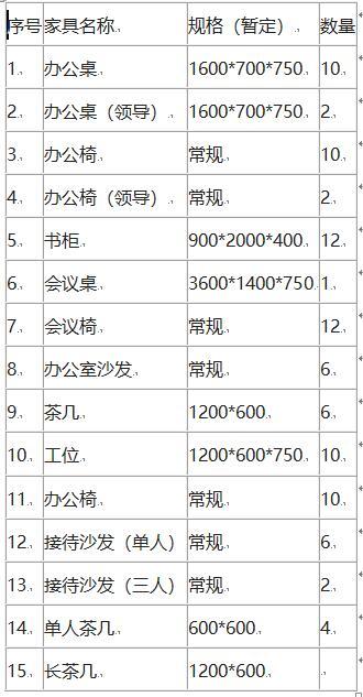 一(yī)、家(jiā)具種類、規格和(hé)數(shù)量:
