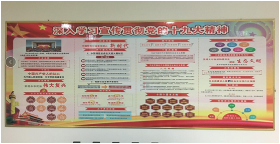 10月(yuè)18日(rì),組織全隊在家(jiā)幹部職工(gōng)觀看(kàn)十九大(dà)開(kāi)幕式盛況直播,全程聽(tīng)取了( le)習(xí)近(jìn)平總書(shū)記作(zuò)的(de)工(gōng)作(zuò)報(bào)告;11§月(yuè)10日(rì),黨支部開(kāi)展了(le)以“認真學習(xí)十九大(dà)精神,努 力完成全年(nián)目标任務”為(wèi)主題的(de)黨日(rì)活動;11月(yuè)24日(rì),隊領導班子(zǐ)成員(y¥uán)參加了(le)學習(xí)貫徹黨的(de)十九大(dà)精神省委宣講團報(bào)告會(huì)暨黨員(yuán)♣領導幹部視(shì)頻(pín)培訓班;11月(yuè)20-24日(rì),支部書(shū)記參加了₩(le)地(dì)質局黨校(xiào)舉辦的(de)“黨務幹部學習(xí)貫徹十九大(dà)精神”脫産培訓;11月(yuè)29日(rì§)召開(kāi)支委會(huì),專題布置深入貫徹學習(xí)十九大(dà)精神相(xiàng)關工(gōng)作(zuò);12月(yuè)12日(rì),圍繞“學習(x☆í)貫徹十九大(dà)精神,嚴肅黨內(nèi)政治生(shēng)活,深入推進項目建設年(nián)活動”主題,召開(kāi)領導班子(zǐ)民(mín)主生(shēng)活會(huì)☆,分(fēn)管領導冉瑞生(shēng)在會(huì)上(shàng)講了(le)題為(wèi)《把十九大(dà)精神貫徹落實到(dào)我隊地(dì)質工(gōng)作(zuò)創÷新轉型發展中》黨課;測繪隊還(hái)在辦公場(chǎng)所顯眼位置懸挂“深入學習(xí)宣傳貫徹黨的(de)十九大(dà)€精神”宣傳展闆,營造濃厚學習(xí)氛圍。